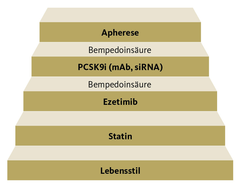 Zusammenfassend stehen uns gegenwärtig mehrere therapeutische Optionen für eine effektive Stufentherapie der Hypercholesterinämie zur Verfügung (Abb. 5).