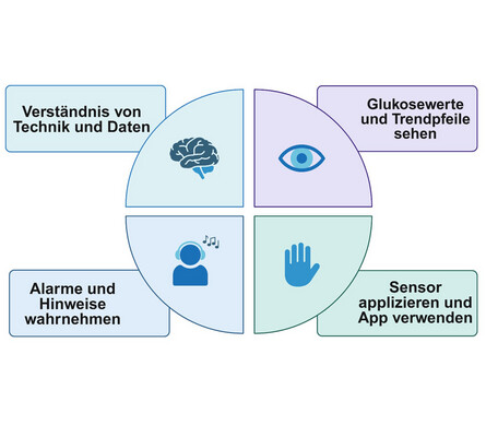 Im höheren Lebensalter können altersbedingte Einschränkungen die Anwendung und Wirksamkeit von CGM-Systemen erheblich beeinflussen. Kognitive Beeinträchtigungen wie Gedächtnisstörungen, reduzierte Lernfähigkeit, eingeschränkte Aufmerksamkeit oder verlangsamte exekutive Funktionen können eine sichere Handhabung erschweren. Deshalb sollte bei älteren Menschen mit Diabetes stets geprüft werden, ob die kognitiven Voraussetzungen für den Umgang mit CGM-Technologie gegeben sind.