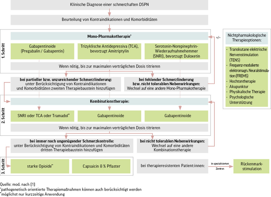 - symptomatische Pharmakotherapie im Falle einer schmerzhaften DSPN [1] (Abb. 2).