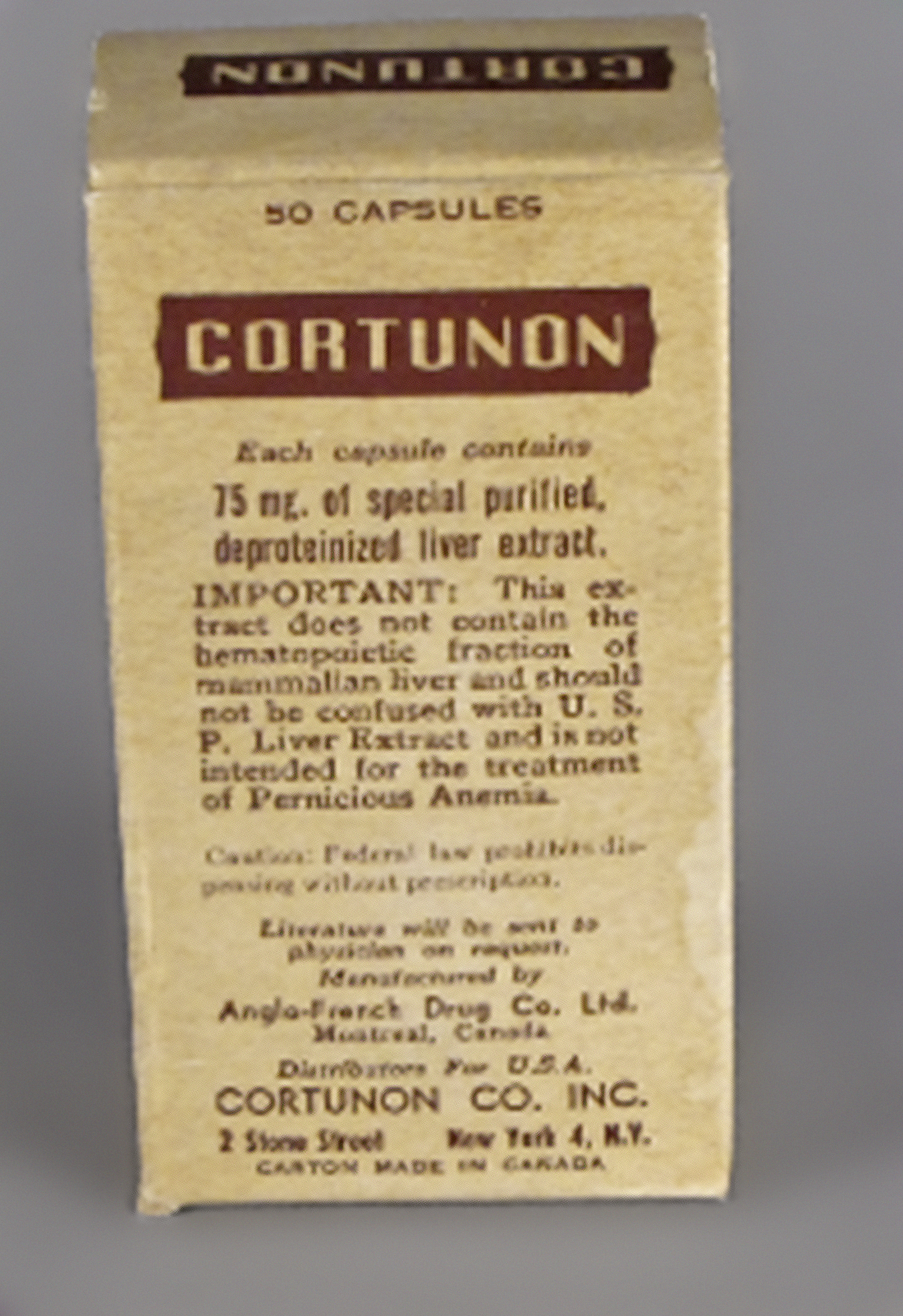 © National Museum of American History | Abb. 3: Cortunon Packung mit Warnhinweis, dass es kein Vitamin B12 enthält.