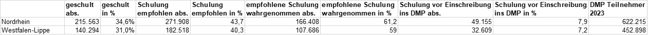 – nur 43,7 Prozent aller Teilnehmer am DMP DM2 haben überhaupt eine Schulung empfohlen bekommen (WL 40,3 %).