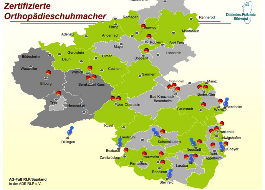 - Zertifizierung von mittlerweile 36 ärztlichen Fußbehandlern, 9 Orthopädieschuhmachern und 1 Orthopädietechniker [5], [6].