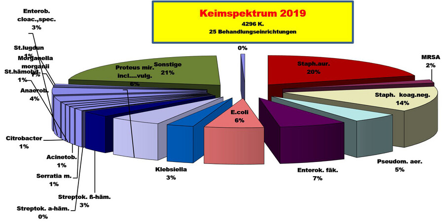 Mit dem auch in den Folgejahren weiterentwickelten Erhebungsbogen erfolgt zusätzlich die Erhebung der Problemkeime (MRSA, Acinetobacter, ESBL-Bildner, 3-MRGN, 4-MRGN, Pseudomonas aerug., (Citrobacter kos., Serratia marc., KNS mit Virulenzfaktoren) [7].