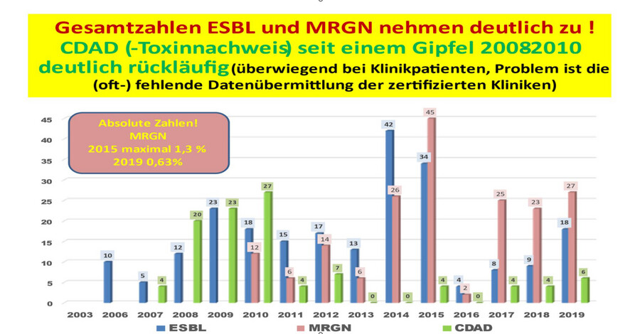 In 14 Jahren beobachteten wir in der Summe 40.525 Keime bei 18.934 Fällen (bei z.T. unvollständiger Übermittlung).