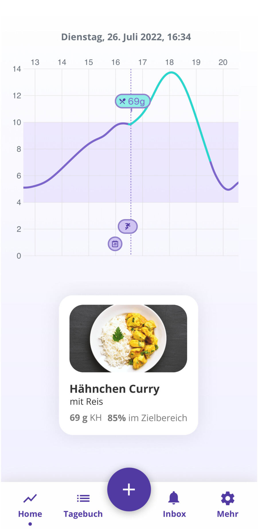 Essen ist einer der Hauptfaktoren, die zu einem Anstieg des Blutzuckerspiegels führt. Diese Glukose-Schwankungen beeinträchtigen das kurzfristige Wohlbefinden und sind mit dem Risiko langfristiger Komplikationen verbunden [1].