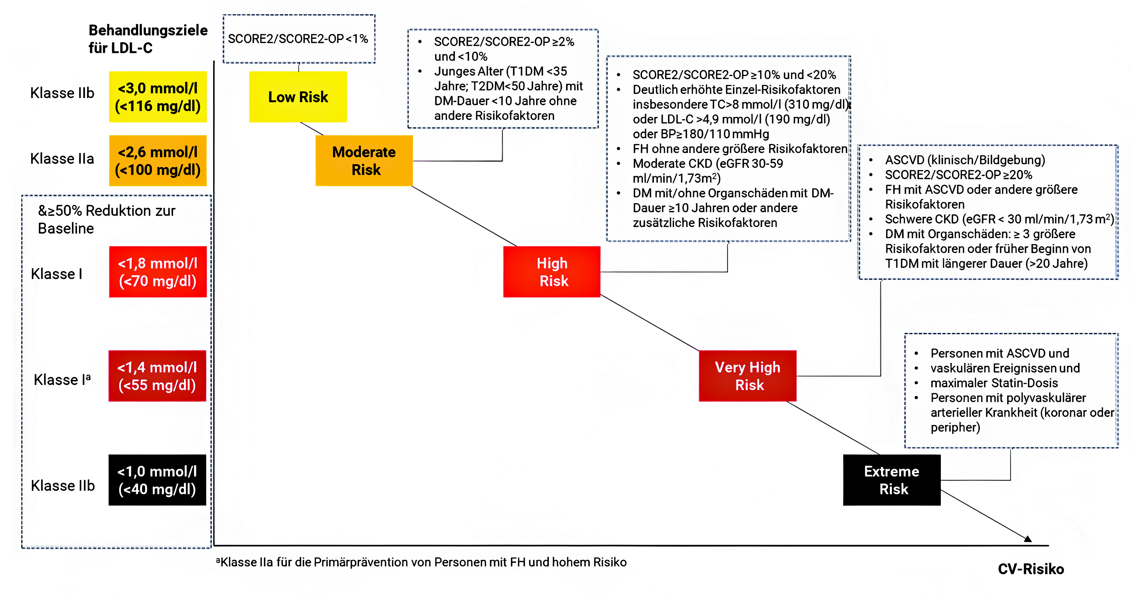Risikokategorien und Behandlungsziele für die LDL-C-Senkung