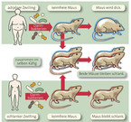 Das intestinale Mikrobiom des adipösen Zwilling lässt auch die betreffende Mäusepopulation an Gewicht zulegen, während im umgekehrten Fall die Mäuse weiterhin schlank bleiben. Lebten beide Gruppen jedoch seit der Übertragung zusammen, bleiben alle schlank. Vermutlich liegt der Grund darin, dass die Nager den Kot der Artgenossen fressen, wobei sich das intestinale Mikrobiom des schlanken Zwillings durchsetzt (Abbildung 2).