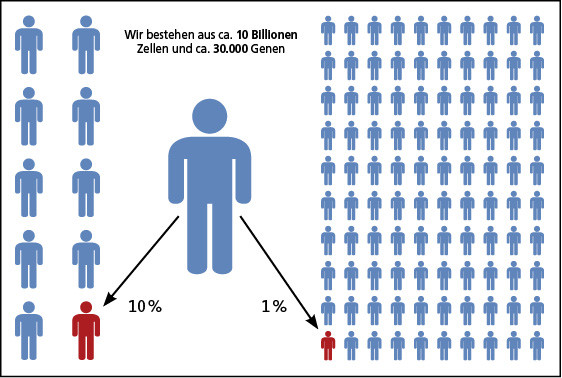 Im Vergleich zum menschlichen oder ersten Genom ist der Informationsgehalt des intestinalen Mikrobioms mindestens um den Faktor 100 höher warum inzwischen häufig der Begriff des zweiten Genoms gebraucht wird.