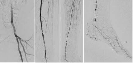 Die Behandlung von zugrundeliegenden Erkrankungen, insbesondere der diabetischen Neuropathie und der peripheren arteriellen Verschlusskrankheit (pAVK) ist für die Therapie beim diabetischen Fußsyndrom neben einer optimalen Wundversorgung unerlässlich. Eine pAVK und eine diabetische Neuropathie sind die wichtigsten Faktoren, die zur Entstehung eines diabetischen Fußsyndroms beitragen und als Folge dessen zu vermehrten Amputationen führen. Periphere Durchblutungsstörungen der Becken und Beinarterien umfassen Stenosen, Verschlüsse und z.B. aneurysmatische Gefäßveränderungen (1). Das Risiko für eine pAVK liegt bei DM 2- bis 4-fach höher als ohne DM. Neben Nikotinabusus ist Diabetes der wichtigste Risikofaktor für die Entwicklung einer pAVK (2). Liegen beide Risikofaktoren gleichzeitig vor, sind die klinischen Verläufe teils dramatisch. Verglichen mit Menschen ohne DM entwickelt sich die pAVK bei Menschen mit DM meist früher und hat eine schnellere Progression, vor allem in Richtung einer kritischen Extremitätenischämie (CL I). Typisch für die pAVK bei DM ist eine multisegmentale Manifestation mit langstreckigen, kalzifizierten Stenosen/Verschlüssen der Unterschenkelarterien mit unzureichender Kollateralbildung (siehe Fallbeispiel).